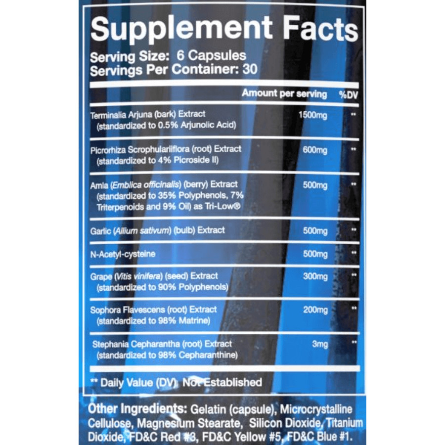 | Terminalia Arjuna (bark) Extract (standardized to 0.5% Arjunolic Acid) | 1,500 mg |