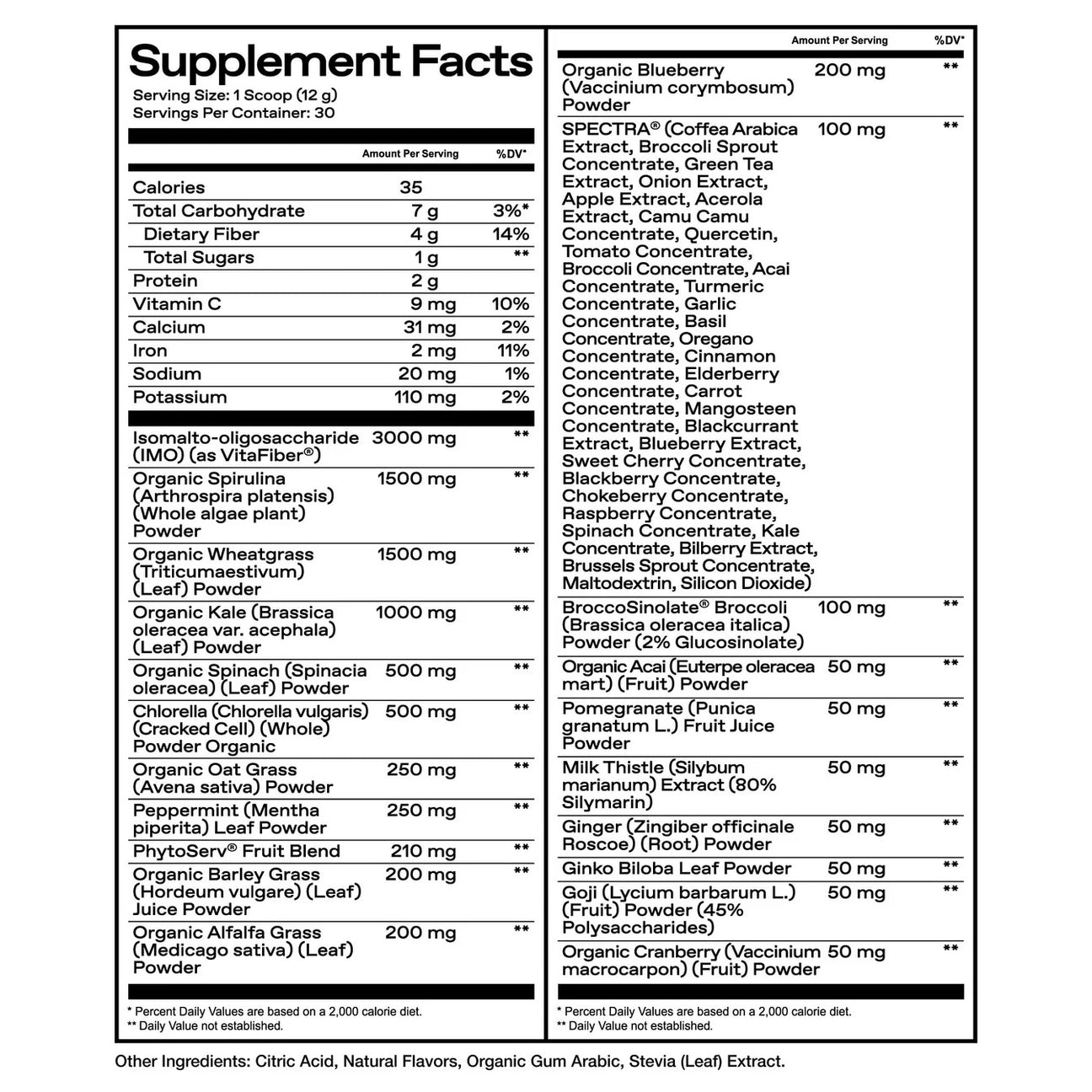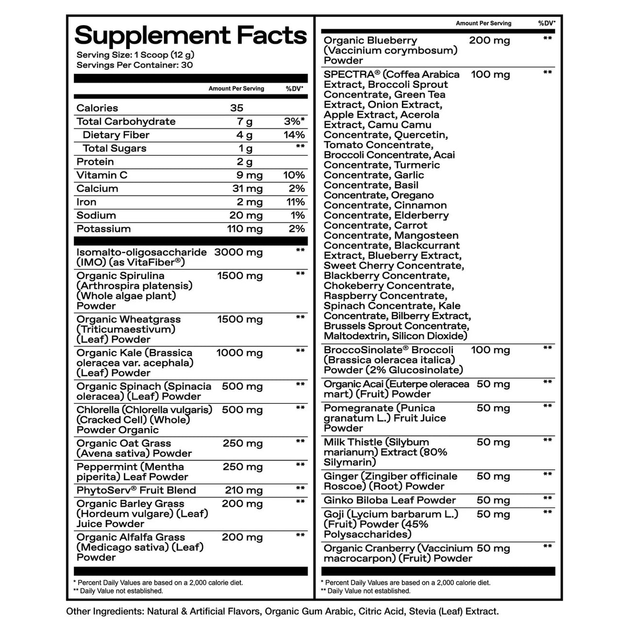| Organic Kale (Brassica oleracea var. acephala) (Leaf) Powder | 1,000 mg |