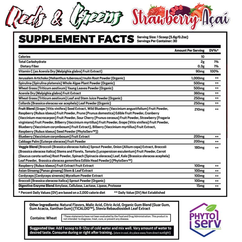 Reds & Greens P1N contains 0mg of total caffeine per serving.
