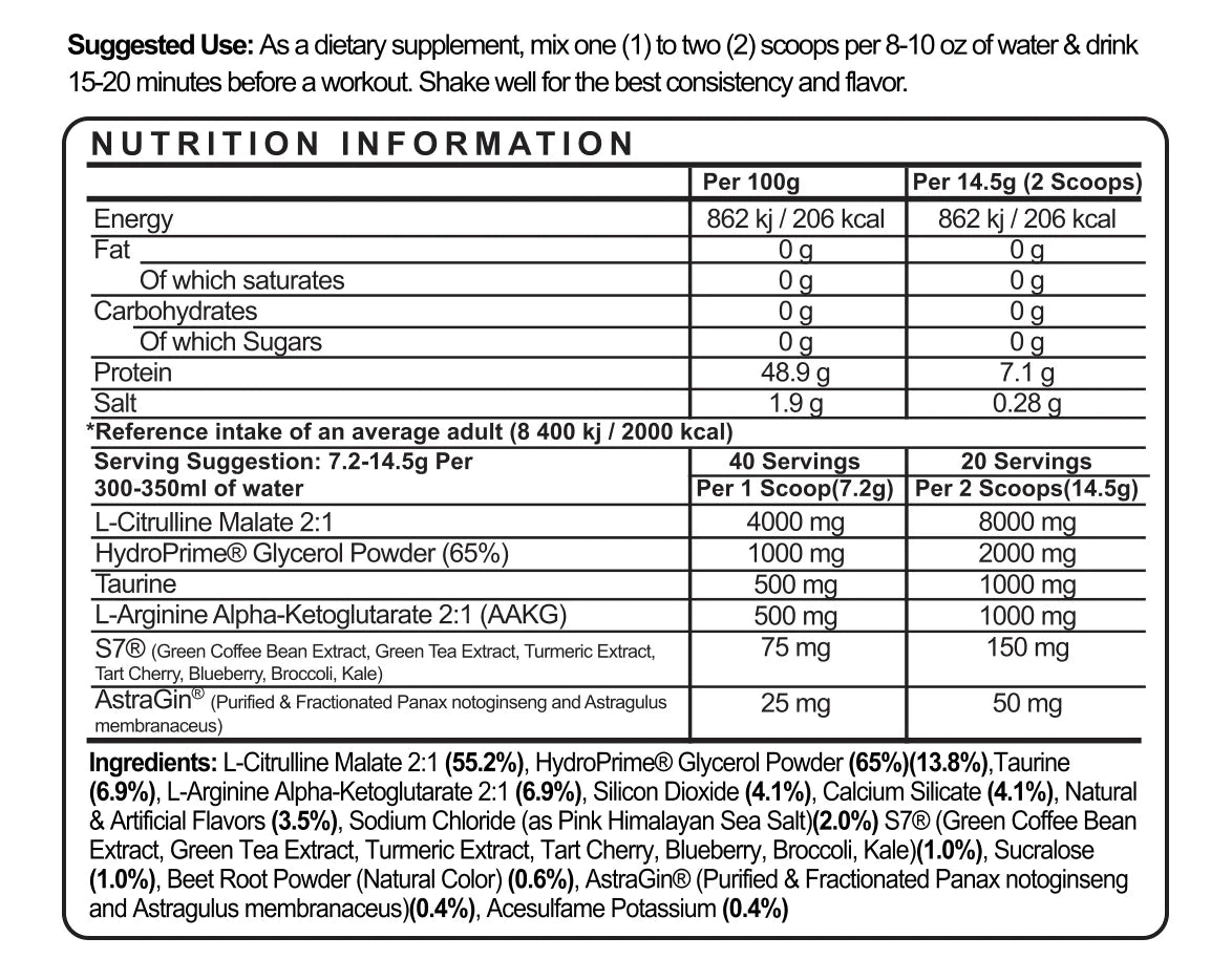 | L-Citrulline Malate 2:1 | 8,000 mg |