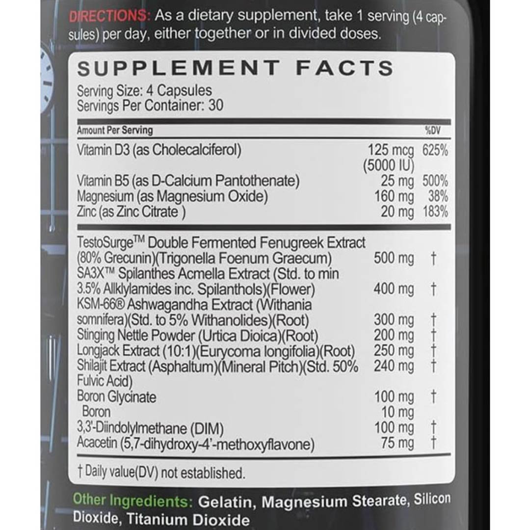 | TestoSurgeâ„¢ Double Fermented Fenugreek Extract (80% Grecunin)(Trigonella Foenum Graecum) | 500 mg |