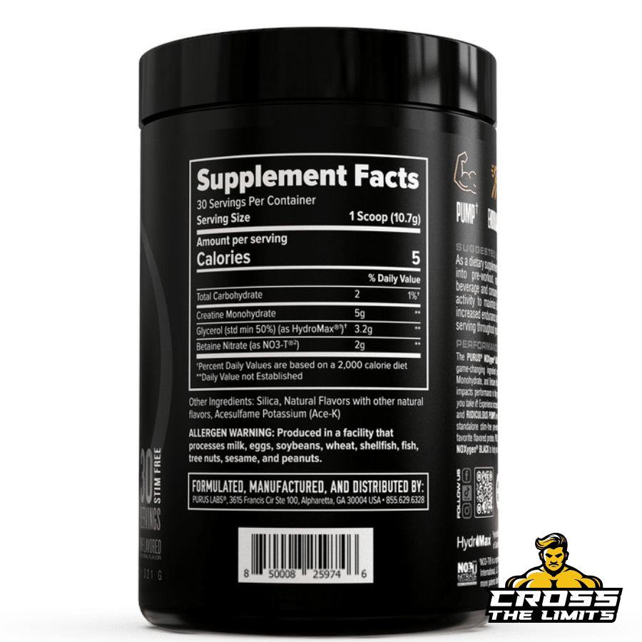 Listed as: Purus Labs Noxygen Black Pump Pre-workout – 321 g