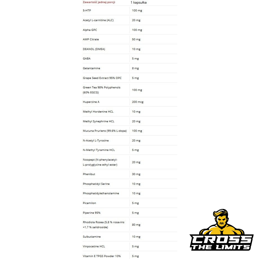 | Noopept (N-phenylacetyl-L-prolylglycine ethyl ester) | 20 mg |