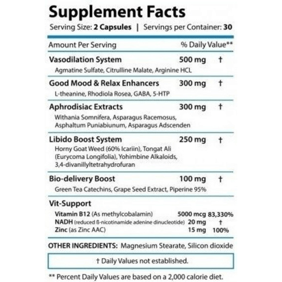 Revange Nutrition Test Erection 60 caps contains 0mg of total caffeine per serving.