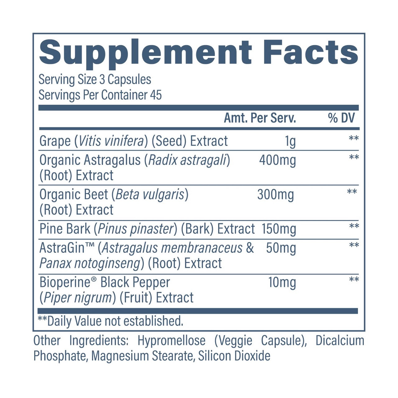 | Pine Bark (Pinus pinaster) (Bark) Extract | 150 mg |
