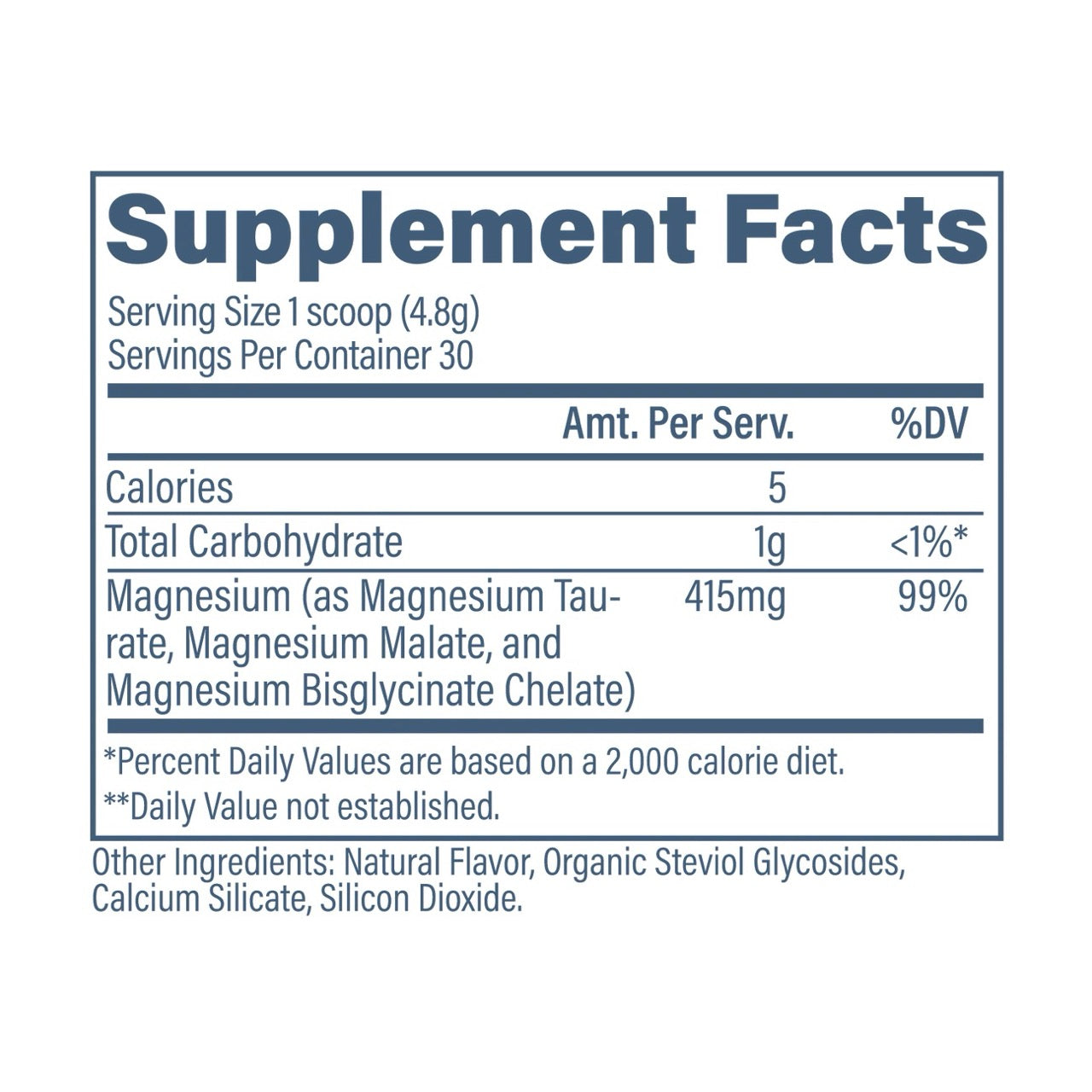 | Magnesium (as Magnesium Taurate, Magnesium Malate, and Magnesium Bisglycinate Chelate) | 415 mg |