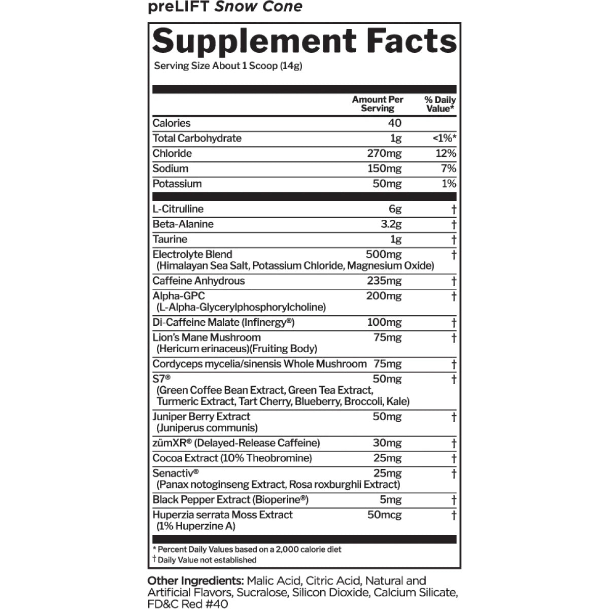 - Pre Lift Pre-workout delivers a comprehensive formula with 25 different active ingredients, including 6 licensed/patented compounds.