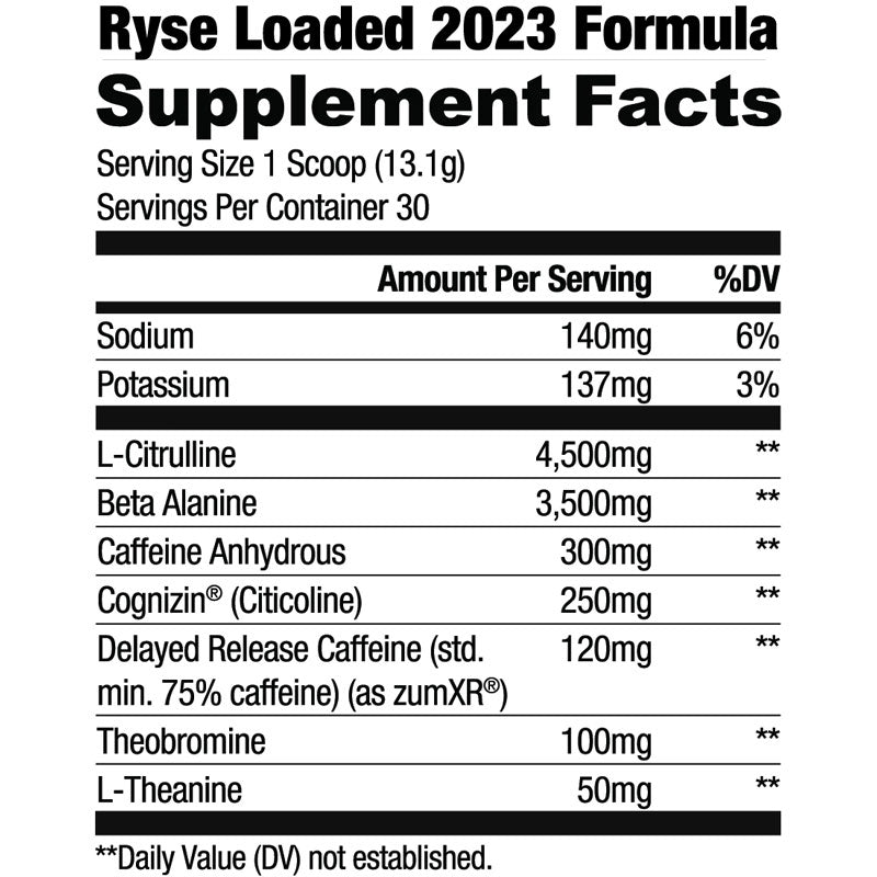 Ryse Loaded Pre-Workout contains 390mg of total caffeine per serving.