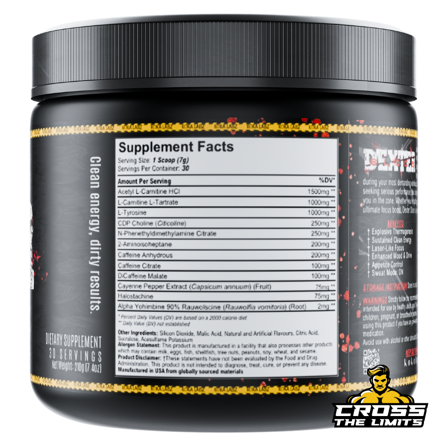 Sample Dexter Explosion 1scoop is a potent pre-workout supplement known for its extreme intensity, featuring a comprehensive blend of stimulants and performance enhancers. It is designed for experienced users seeking an intense energy and performance boost.