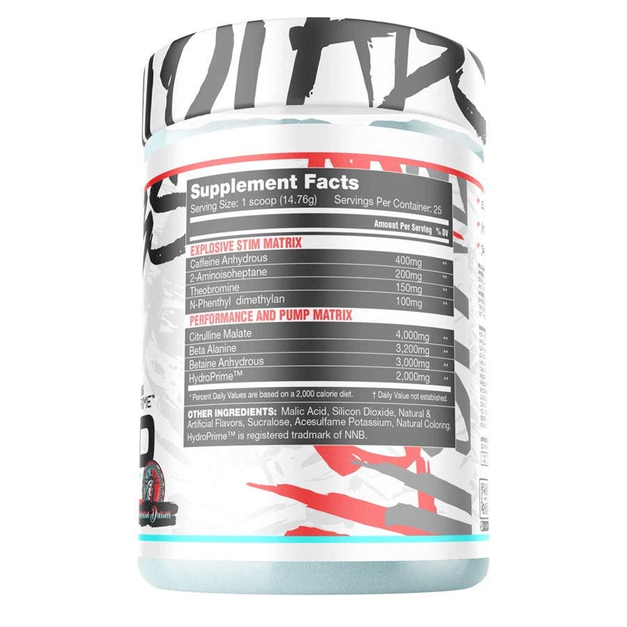 Maximum intensity warning! Contains exotic stimulants (DMHA, DMBA, DMAA) for experienced users only. Not for daily use – cycle with milder options throughout your week. Handle with respect.
