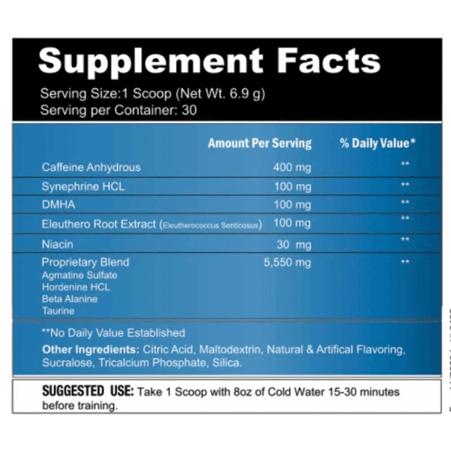Maximum intensity warning! Contains exotic stimulants (DMHA, DMBA, DMAA) for experienced users only. Not for daily use – cycle with milder options throughout your week. Handle with respect.