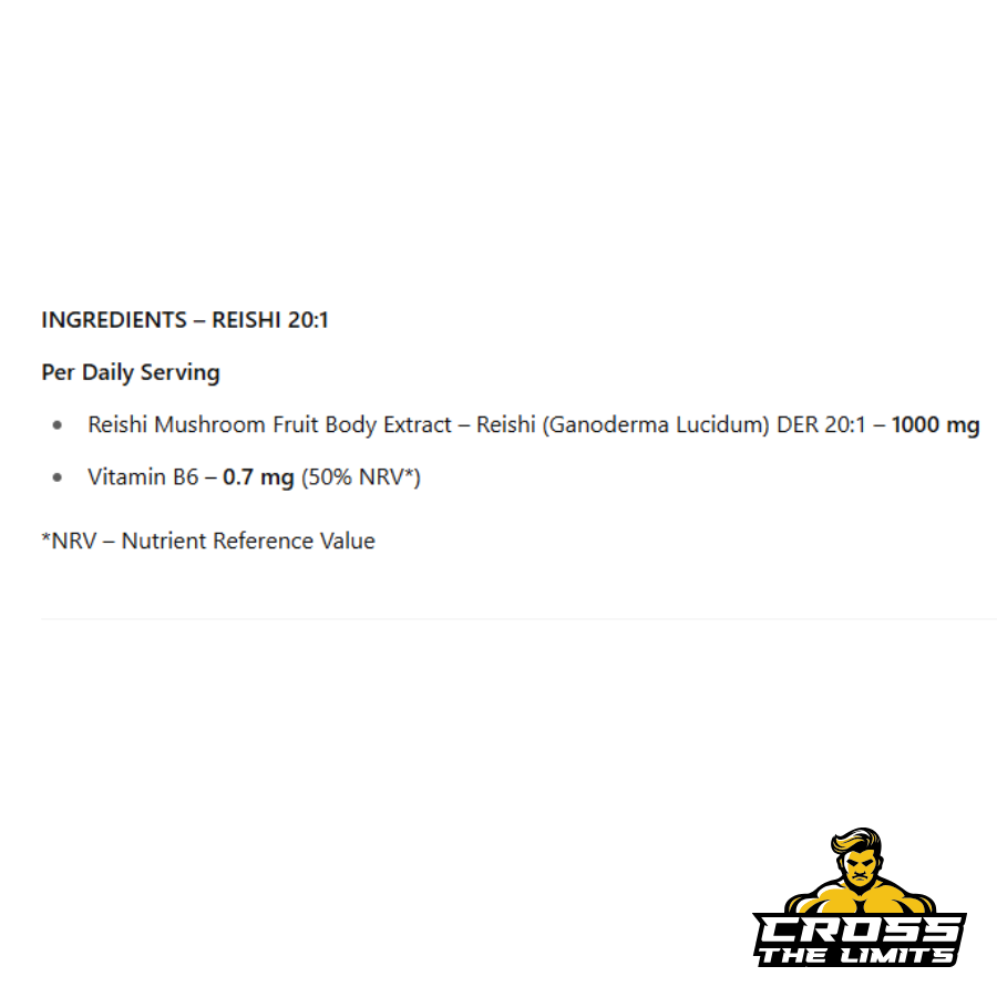 | Reishi Mushroom Fruit Body Extract - Reishi (Ganoderma Lucidum) DER 20:1 | 1,000 mg |