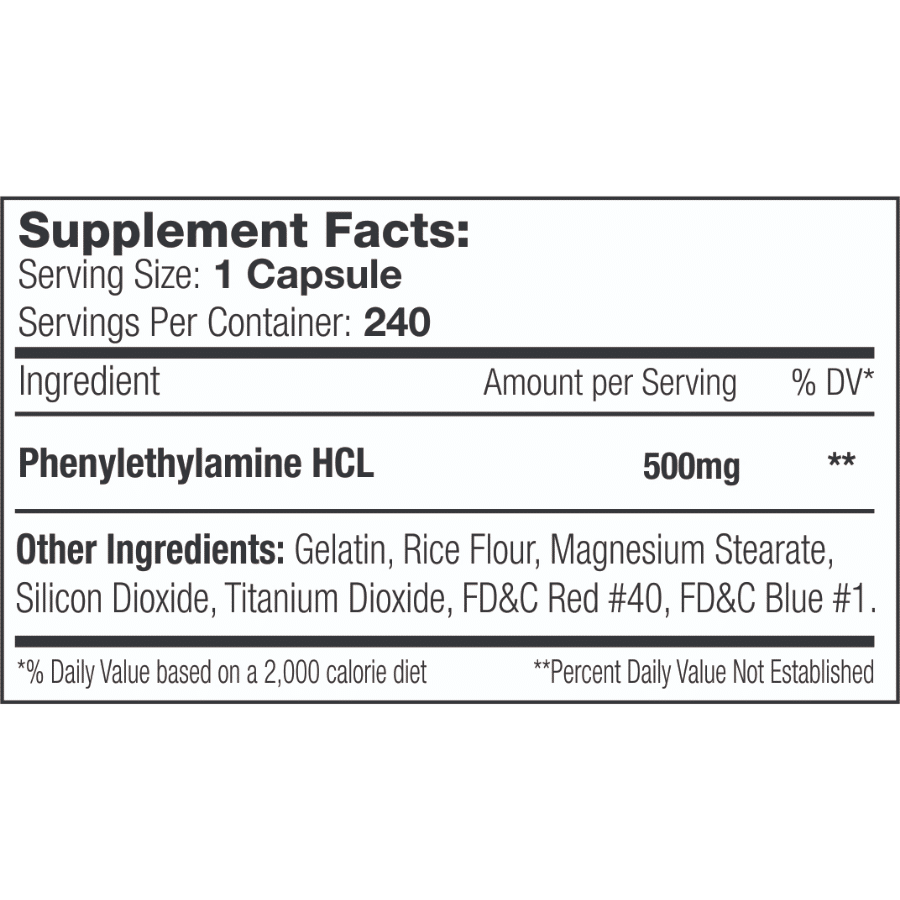 | Phenylethylamine HCL | 500 mg |