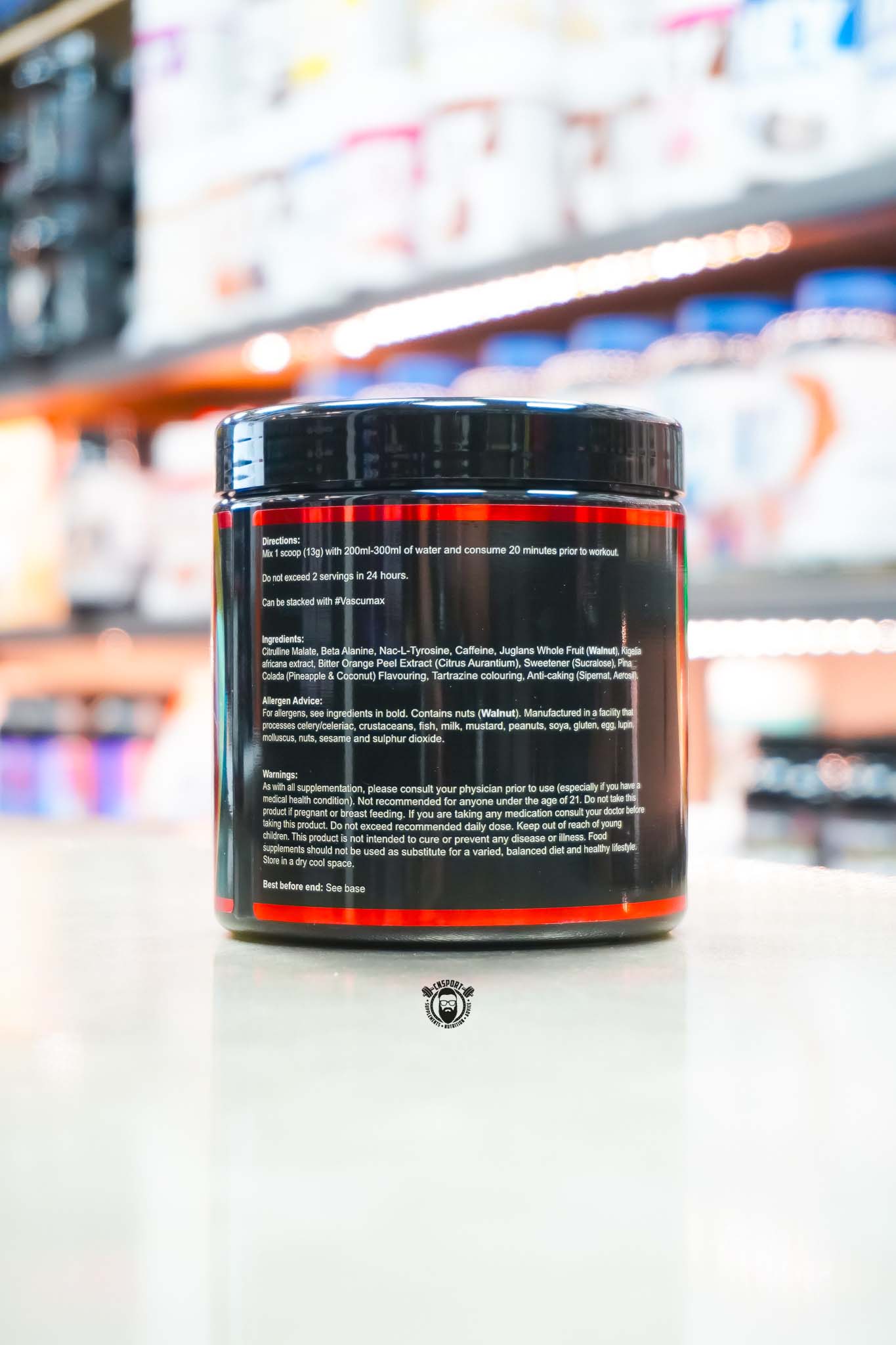 Strom - Stimumax Extreme - 30 Servings contains 300mg of total caffeine per serving.