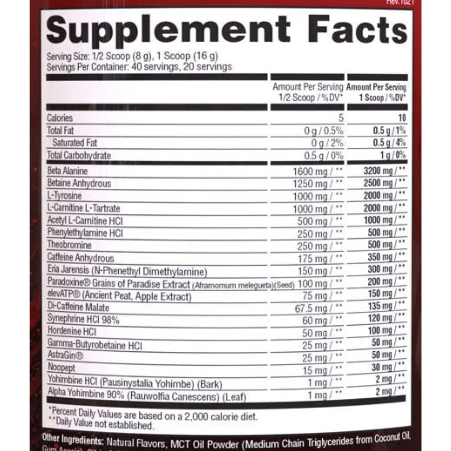 Maximum intensity warning! Contains exotic stimulants (DMHA, DMBA, DMAA) for experienced users only. Not for daily use – cycle with milder options throughout your week. Handle with respect.