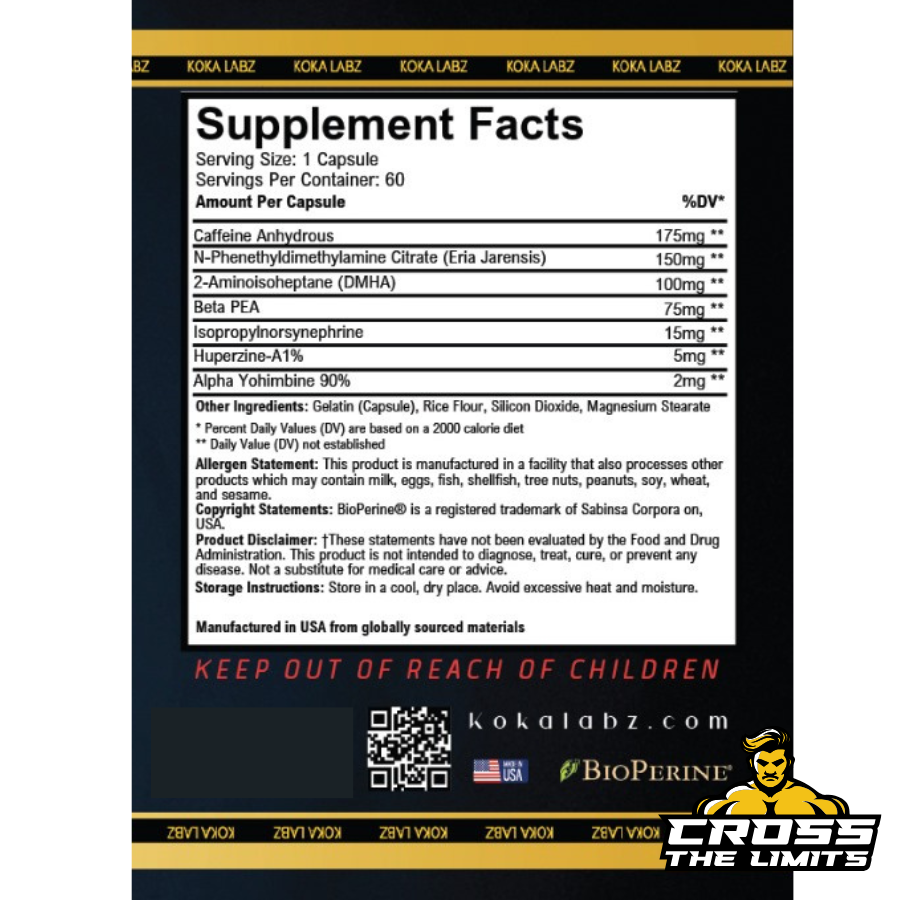 Koka Labz White Rush – Extreme Focus & Energy Amplifier (60 Capsules) is classified as Extreme intensity. This is a maximum intensity pre-workout containing exotic stimulants. It is designed for experienced users only and should not be used daily.