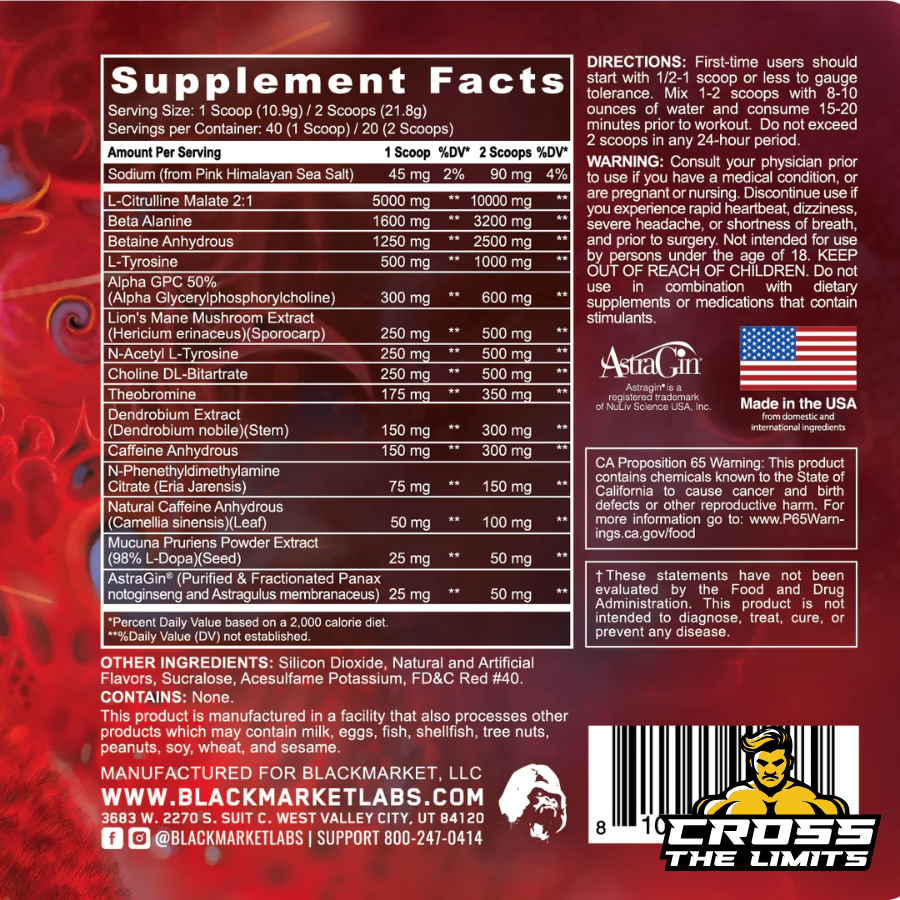 Panda Supplements Panda vs Gorilla Pre Workout 40/20servings is classified as Advanced intensity. This pre-workout is suitable for most users.