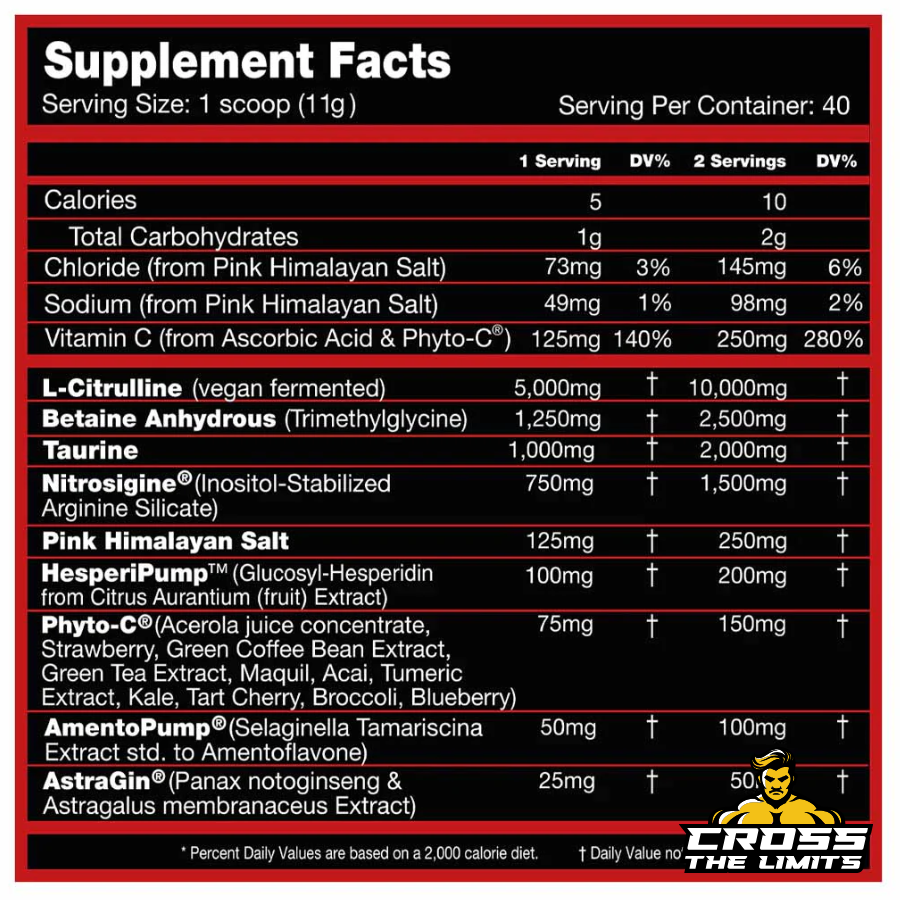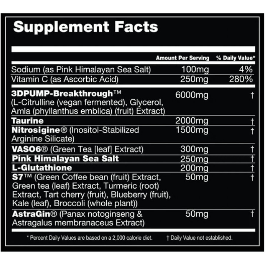 | Nitrosigine® (Inositol-Stabilized Arginine Silicate) | 1,500 mg |