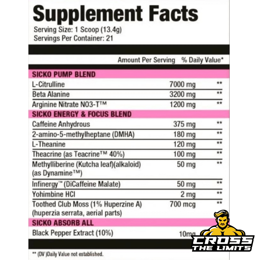 Sarma-Com Sicko Mode 282g is classified as Extreme intensity. This is a maximum intensity pre-workout containing exotic stimulants. It is designed for experienced users only and should not be used daily.