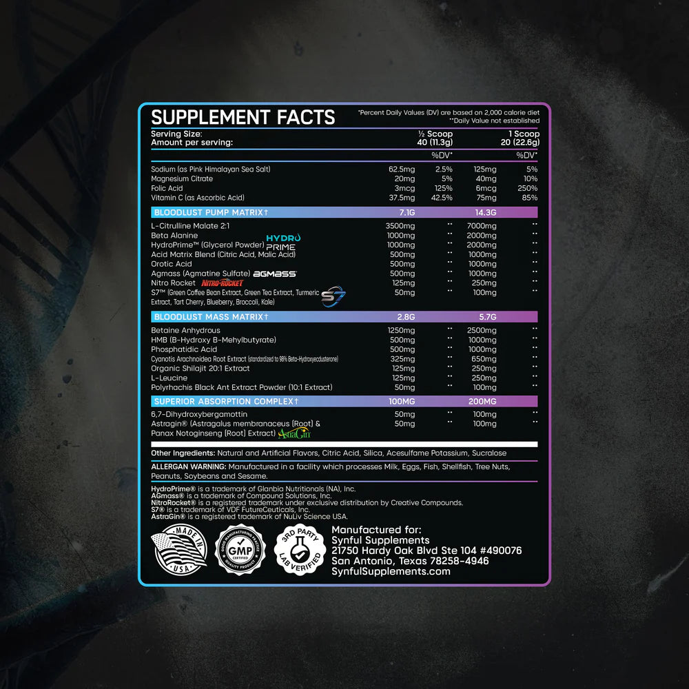 Synful Supplements Bloodlust Mass FAQs