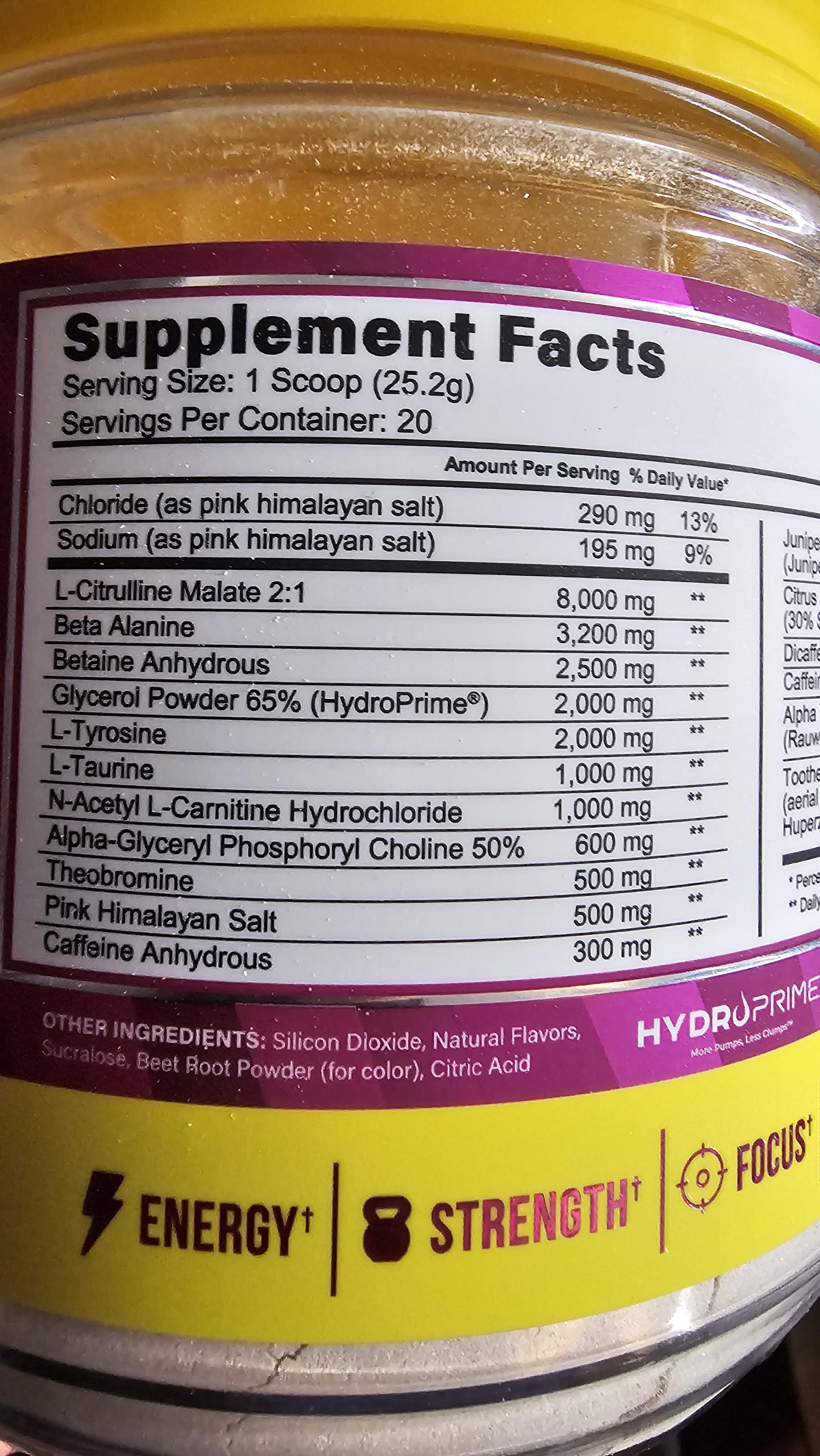 | L-Citrulline Malate 2:1 | 8,000 mg |
