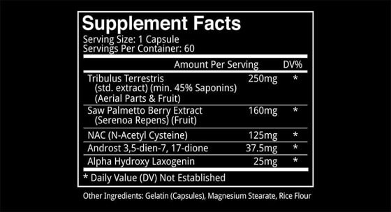 | Tribulus Terrestris (std. extract) (min. 45% Saponins) (Aerial Parts & Fruit) | 250 mg |
