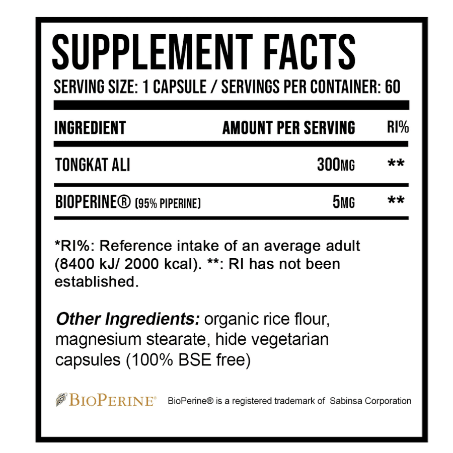 tongkat ali male fertility & sexual function 60 caps contains 0mg of total caffeine per serving.