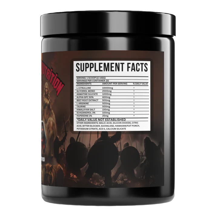 Warlord Pre Workout delivers intense muscle pumps and a desirable dry, vascular look. It is highly effective for stacking with other supplements to amplify results. Features a robust blend of pump-enhancing ingredients such as L-Citrulline, Glycerol Mono, and Agmatine Sulfate.