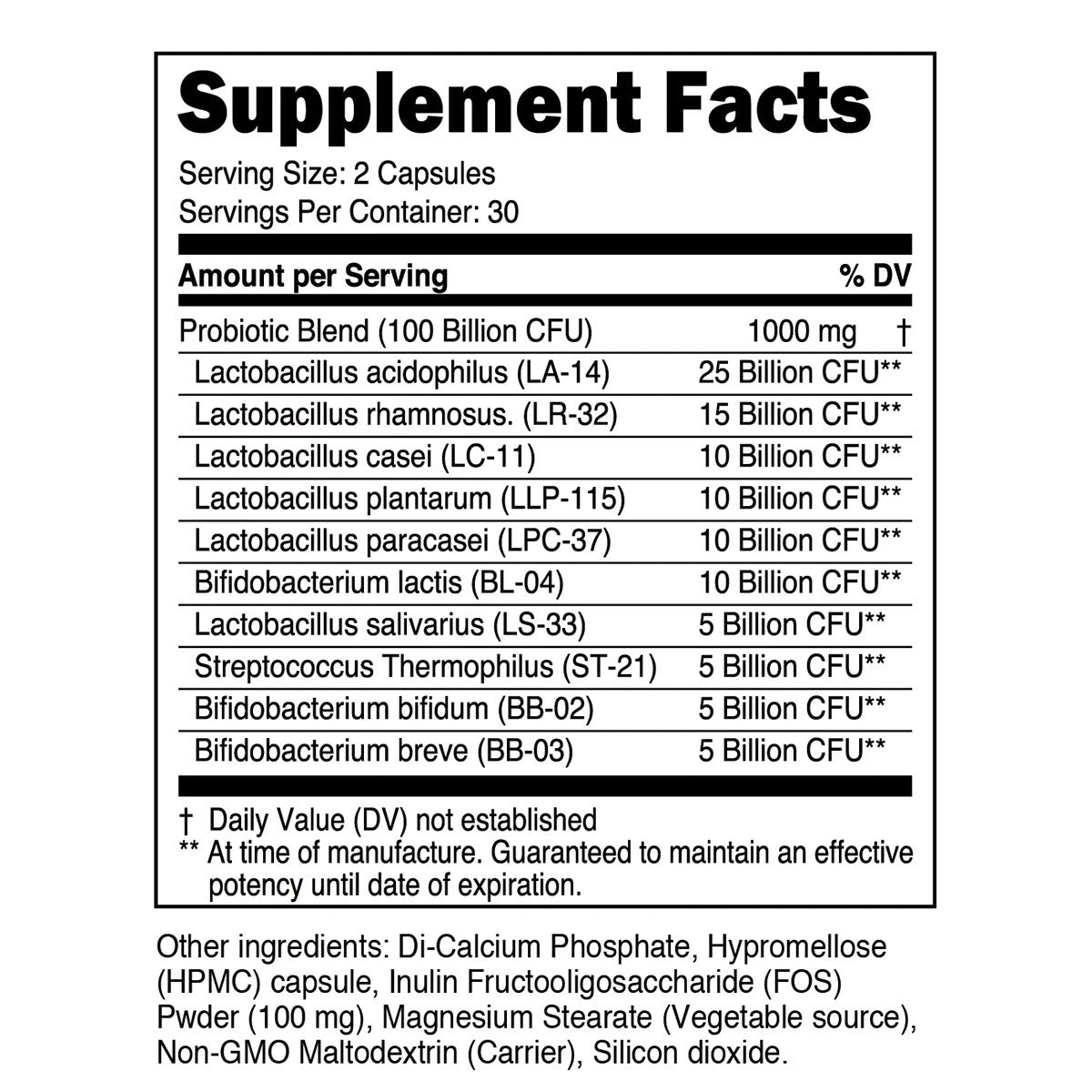 | Lactobacillus acidophilus (LA-14) | 25 Billion CFU |