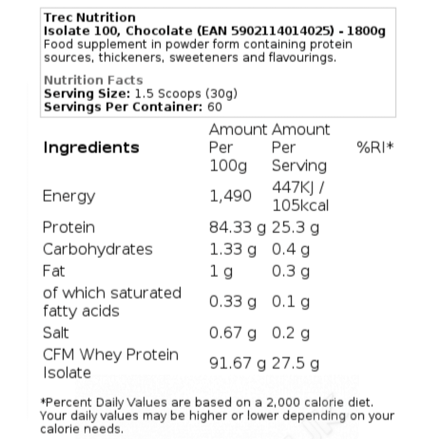 Trec Nutrition Isolate100 1500grams is available from retailers including Cross The Limits. Prices range from $60.03 GBP.