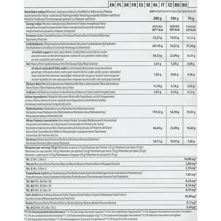 Trec Nutrition Mass XXL 4800g is classified as Non-Stimulant/Pump intensity. This pre-workout is suitable for most users.