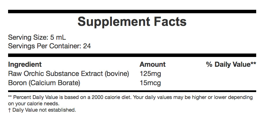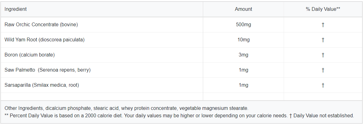 | Raw Orchic Substance Extract (bovine) | 125 mg |