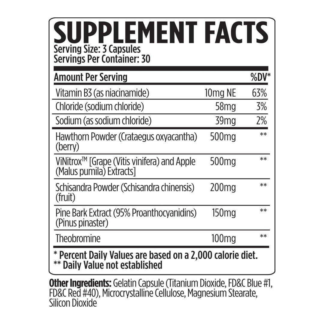 | ViNitrox™ [Grape (Vitis vinifera) and Apple (Malus pumila) Extracts] | 500 mg |