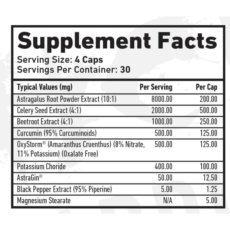 | OxyStorm® (Amaranthus Cruenthus) (8% Nitrate, 11% Potassium) (Oxalate Free) | 500 mg |